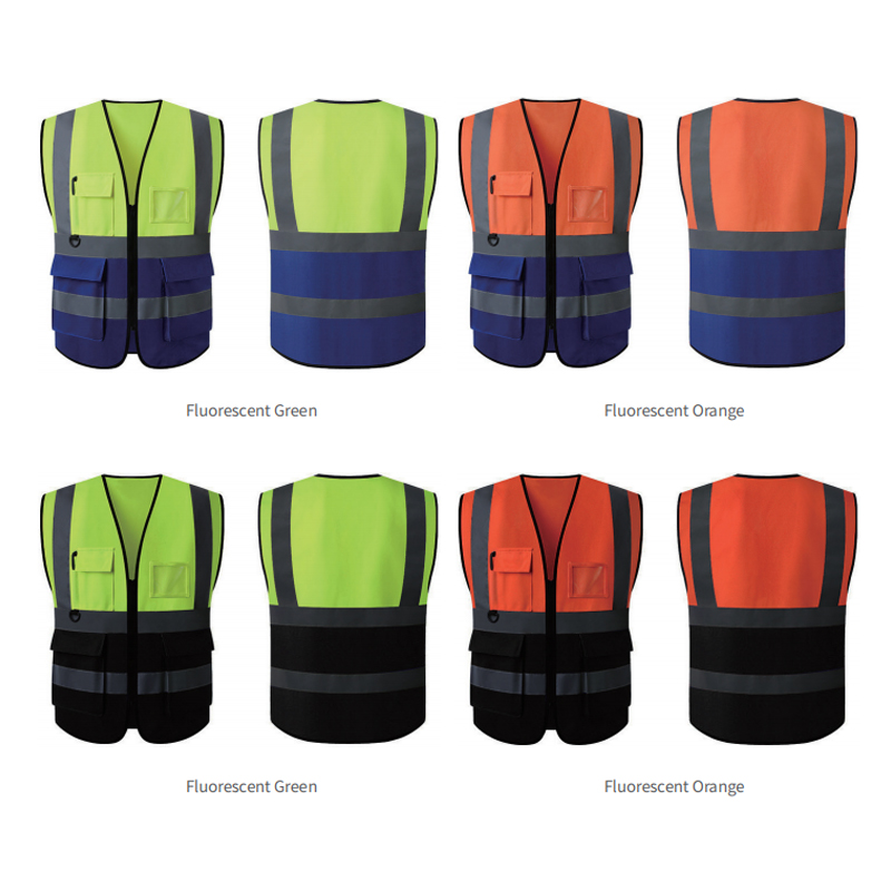 Áo phản quang có khóa kéo chặn màu nhiều túi bốn vạch được trang bị bốn dải phản quang, được bố trí khéo léo ở ngực và lưng, cải thiện hiệu quả tầm nhìn của người mặc vào ban đêm hoặc trong điều kiện ánh sáng yếu, nhờ đó tăng cường an toàn đáng kể. Nhiều túi mang đến sự tiện lợi hơn cho người mặc. Có thể dễ dàng mang theo nhiều nhu yếu phẩm khác nhau như điện thoại di động, chìa khóa, dụng cụ,… mà không cần thêm túi xách hay ba lô, giúp các hoạt động ngoài trời trở nên thuận tiện hơn. Khác với những chiếc áo vest phản quang truyền thống, chiếc áo vest này sử dụng thiết kế khối nhiều màu sắc, khiến tổng thể diện mạo trở nên thời trang và cá tính hơn, tăng thêm vẻ thời trang và nét quyến rũ cá nhân cho người mặc. Thiết kế sáng tạo này không chỉ nâng cao độ an toàn mà còn giúp áo phản quang không còn nhàm chán và phù hợp hơn với xu hướng thời trang. Thiết kế khóa kéo giúp việc mặc vào và cởi ra dễ dàng và nhanh chóng hơn. Không cần phải kéo hay cởi các nút phức tạp, chỉ cần kéo nhẹ dây kéo để mặc vào và cởi ra, tiết kiệm thời gian và công sức. Thiết kế này không chỉ tính đến nhu cầu thực tế của người mặc trong trường hợp khẩn cấp mà còn cải thiện sự thoải mái và tiện lợi khi đeo.